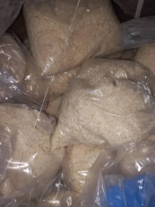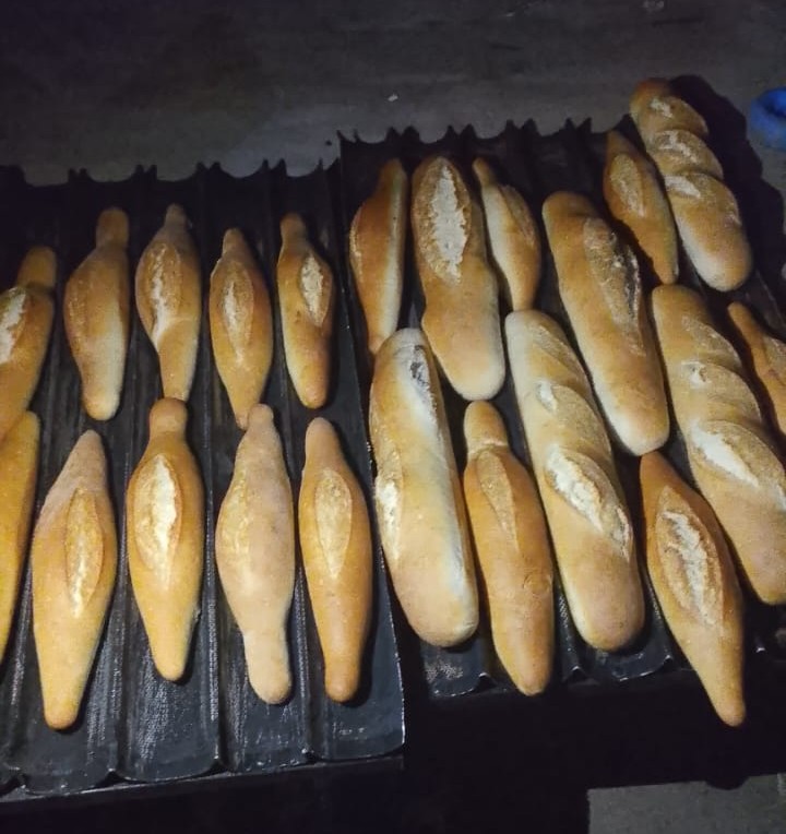 Thanks to our friend Neema who purchased two weeks’ worth of ingredients (flour, salt, yeast, sugar), allowing Aristote to reimburse her a little each month, he is able to launch his bakery project. Last night, he started with a first small batch, not a small challenge seeing they have no electricity at night in this part of town, like in many parts of Kinshasa.