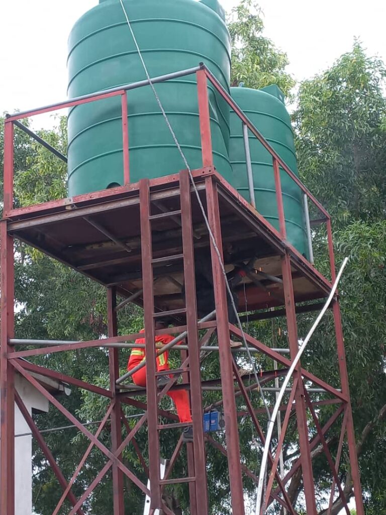 The cisterns that collect the drinking water from the solar well have to be cleaned and disinfected on a regular basis in order to maintain the quality of the water.