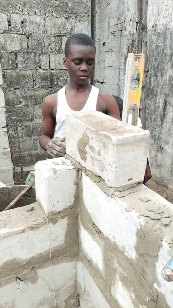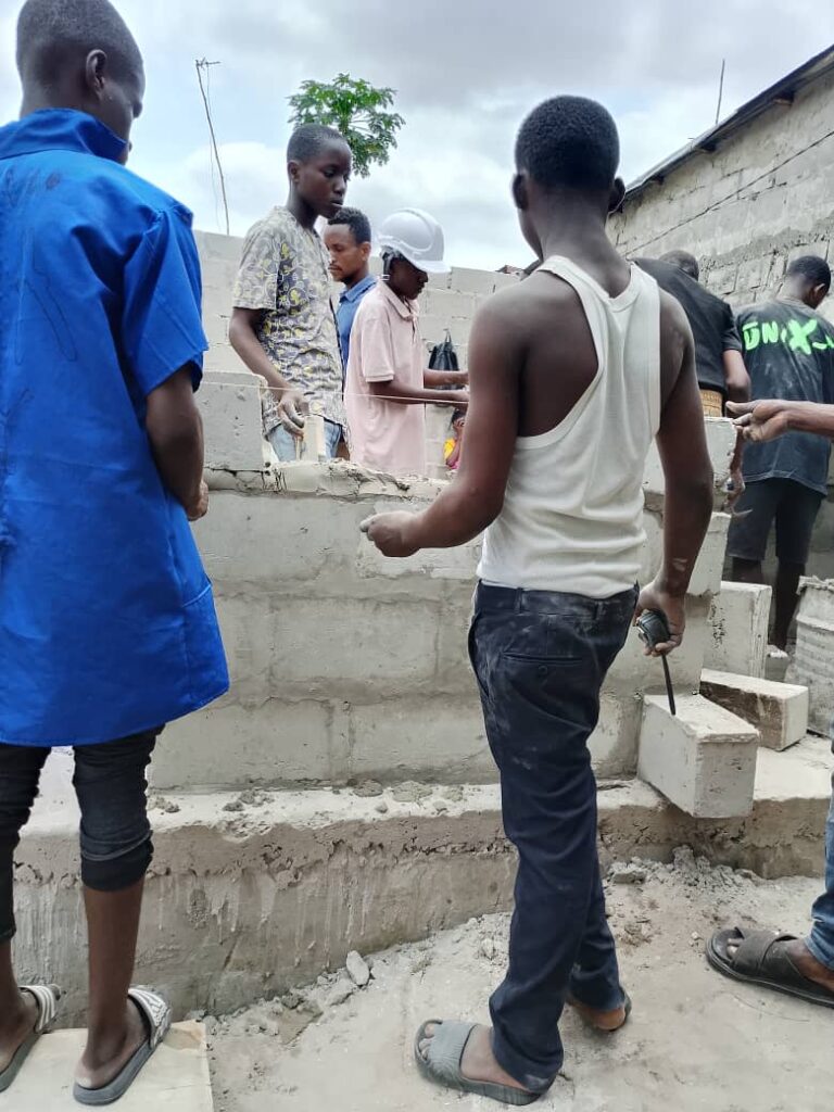 Aristote: You may remember how Aristote, a few months ago, had to quit his position as an assistant professor in university for reason of morality and integrity. Being a civil engineer, he has decided to create his own construction enterprise, and to teach building skills to underprivileged youth and street kids. He has already started with the young people from the association « Jeunes au Soleil » and some others he’s been teaching.